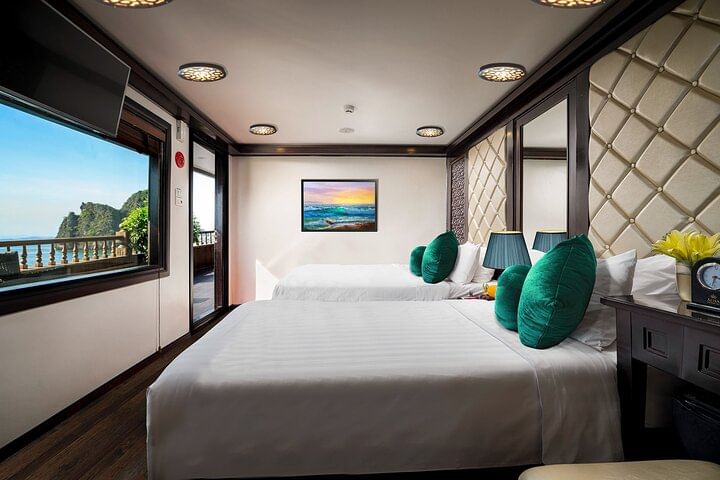 The itinerary is carefully curated to include visits to some of Halong Bay's most famous sites, such as Luon Cave,Tiptop island, Sung Sot Cave. Activities include kayaking, swimming, hiking, and exploring these natural wonders. Onboard, guests can indulge in gourmet meals at the fine dining restaurant, unwind with relaxing treatments at the spa, and partake in various entertainment options.