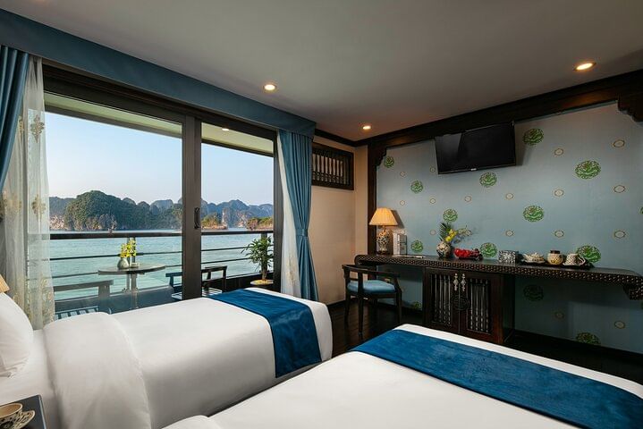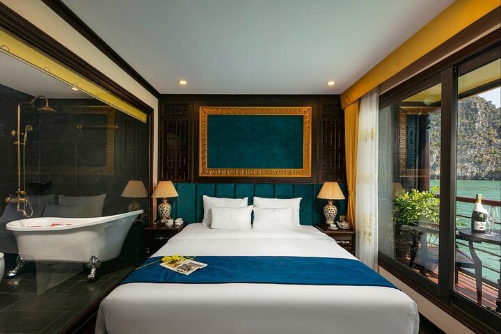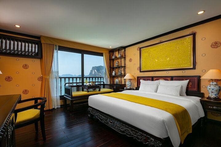 Floating on the emerald waters of Lan Ha Bay, Icon Cruises brings passengers back to the previous centuries, where they have a chance to immerse in the magnificent historic architecture of Vietnam. The cruise ship is one of a kind as it is perfectly designed to reconstruct the history of the Nguyen Dynasty and its royal architecture. On the magnificent Icon, guests can enjoy the most authentic traditional experience while traveling back to the ancient time in our unique, special patterned and limited suites.