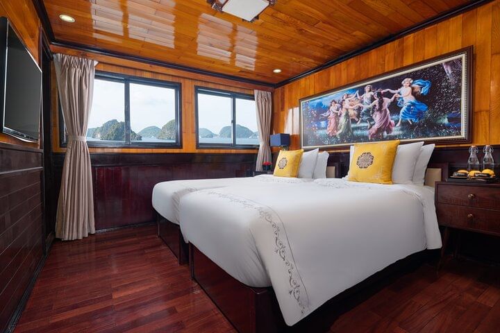Discover the magic of Halong Bay on a 3-day cruise adventure. Sail through emerald waters surrounded by breathtaking limestone formations. Immerse yourself in the wonder of Sung Sot Cave, a hidden gem of stalactite and stalagmite beauty. Conquer the summit of Titov Island for panoramic views that will take your breath away. Explore the mysterious Luon Cave, a secret passage through the heart of the bay. Create unforgettable memories aboard our luxurious cruise, where comfort and elegance meet nature's splendor.