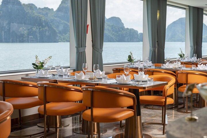 Step aboard the 5-Star Leona Luxury Day Cruise from Halong Cruise Port and immerse yourself in the stunning beauty of one of the world’s great natural wonders. Glide across emerald waters, marvel at the towering limestone karsts, and soak in the serene atmosphere of Halong Bay. Savor a gourmet lunch crafted by skilled chefs, unwind on the spacious sundeck, or join in exciting activities like kayaking and swimming. With its elegant modern design, world-class service, and unforgettable scenery, the Leona Cruise delivers a truly luxurious day on the bay.