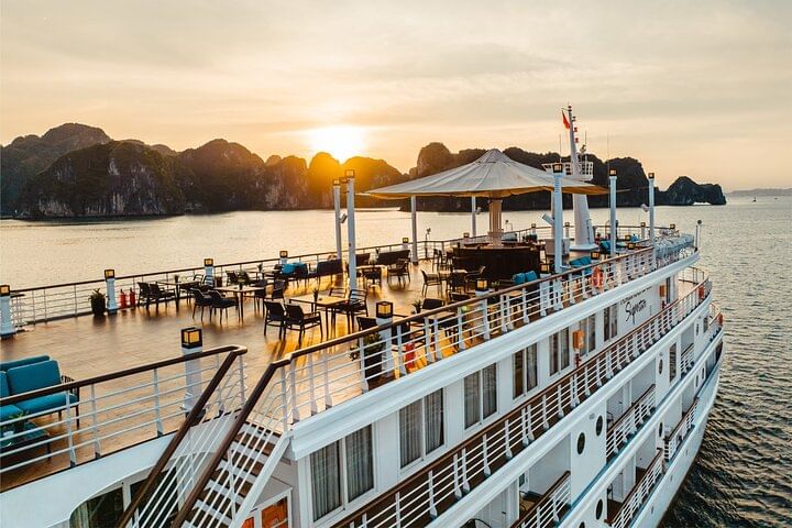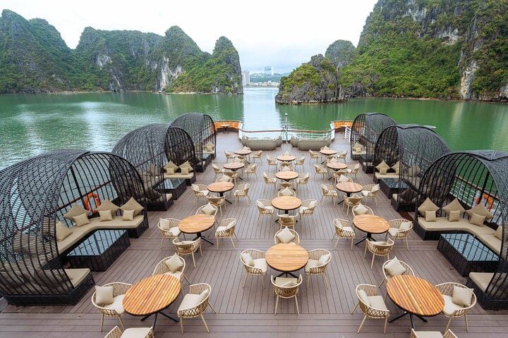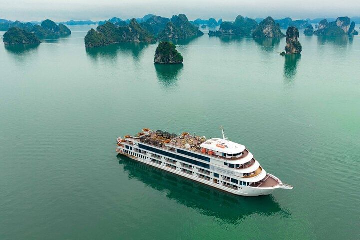 Join Our Cruise for an extraordinary day journey, the largest cruise in Halong Bay. Experience the breathtaking beauty of this UNESCO World Heritage site, explore hidden gems, and relish delicious meals. Unwind on the sundeck amidst stunning landscapes and make cherished memories that will last a lifetime. Don't miss this unparalleled experience!