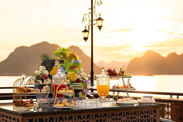 Depart from Hanoi for an unforgettable day aboard the Ambrose 5-Star Luxury Cruise in Ha Long Bay. Travel in comfort with a premium limousine transfer before boarding the elegant Ambrose vessel, where style meets sophistication. Glide past dramatic limestone cliffs, uncover hidden caves, and enjoy the turquoise waters with opportunities to swim or kayak. Savor a lavish buffet of fresh local specialties while admiring panoramic views of this UNESCO World Heritage site. With its perfect blend of comfort, elegance, and natural wonder, the Ambrose Cruise promises an experience you’ll treasure for a lifetime.