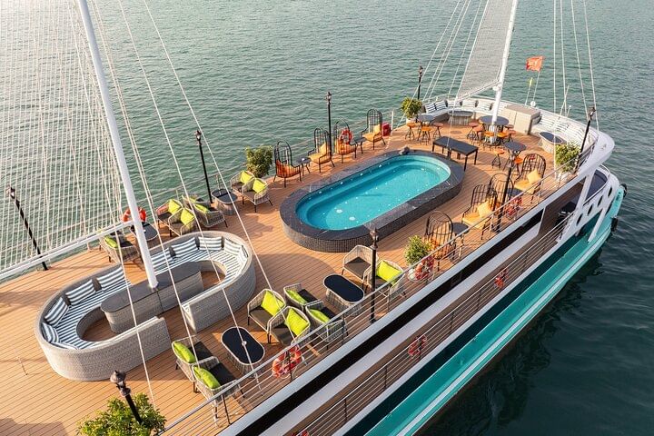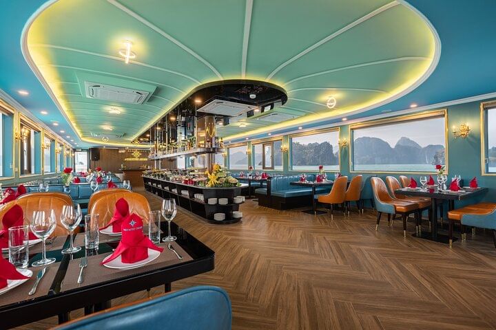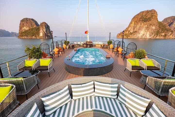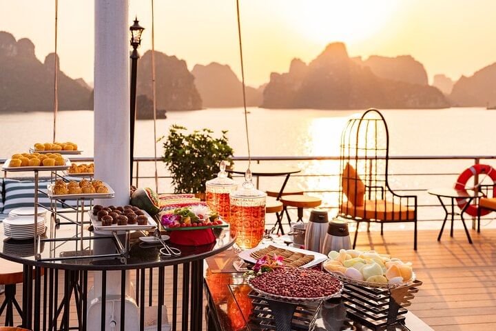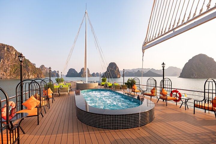 Step beyond the usual itinerary and embark on a cruise that sails through the most iconic parts of Halong Bay, Vietnam. Journey to breathtaking landmarks such as Luon Cave, Titop Island, and the Surprising Cave, where stunning landscapes and hidden wonders await. Enjoy a variety of activities—kayaking, swimming, hiking, and sunbathing—that bring you closer to the bay’s natural beauty and leave you with lasting memories. Onboard, savor a curated selection of Asian and European dishes, paired with refreshing cocktails, for a truly delightful culinary experience.