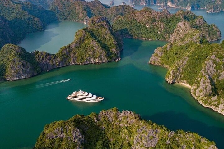 Discover Ha Long Bay the sustainable way aboard the Scarlet Pearl Cruise, an eco-friendly luxury experience designed for conscious travelers. Relax in stylish cabins featuring private sea-view balconies, perfect for unwinding as the stunning scenery drifts by. Explore the pristine beauty of Lan Ha Bay through immersive activities, connect with local communities, and embrace the region’s rich culture and breathtaking landscapes. A journey that blends modern comfort, authenticity, and respect for nature.